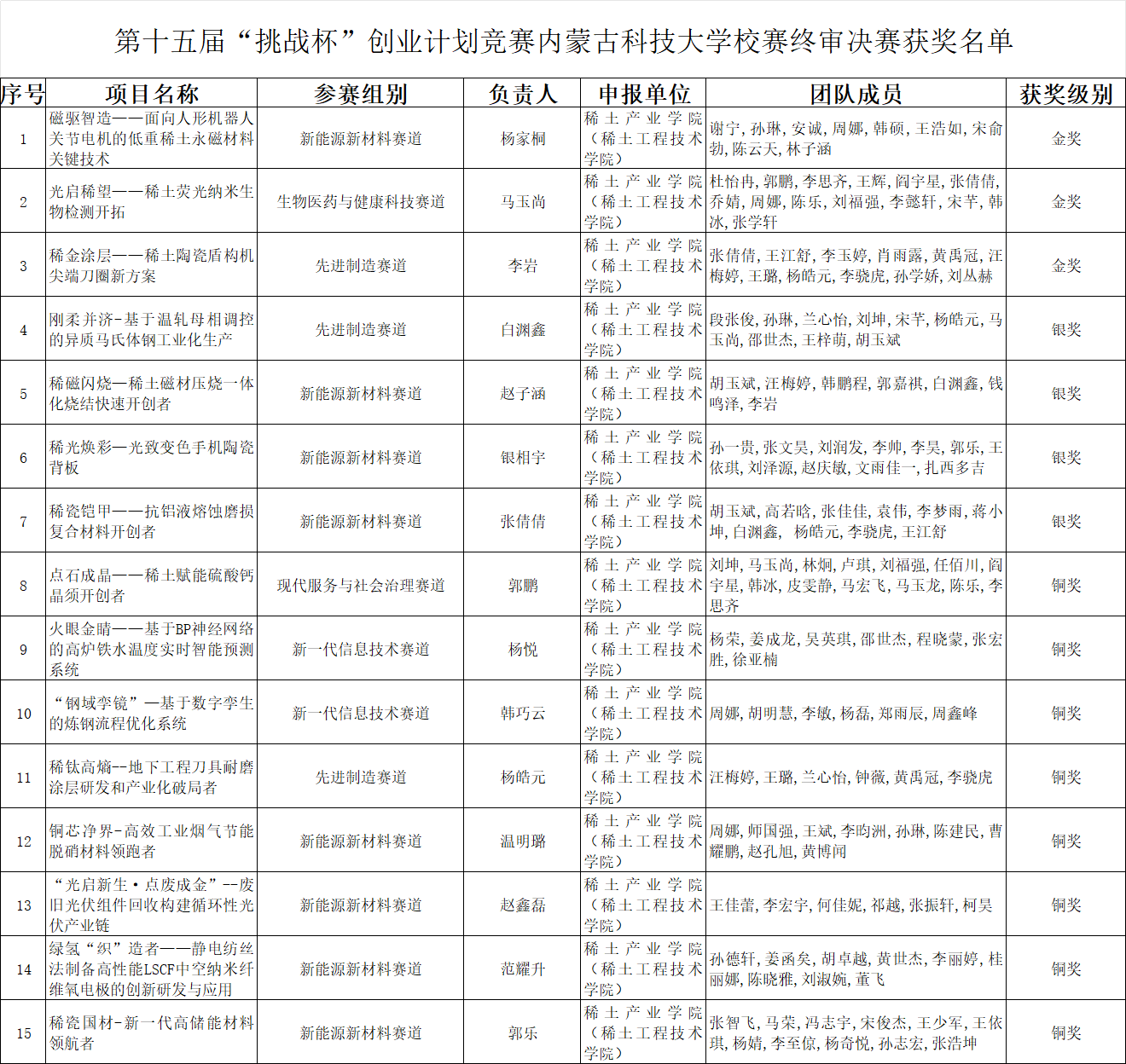 这份优异成绩,正是学院坚持立德树人、深耕创新创业教育、抓实实践育人工作的成果体现。一直以来,学院始终秉持“以赛促学、以赛促创”的育人理念,积极搭建科创实践平台,鼓励师生主动参与科技创新和创业实践。接下来,学院将继续发挥稀土学科的特色优势,持续提升创新创业教育质量,用心培养更多高素质应用型人才,以科技创新助力区域经济社会高质量发展。