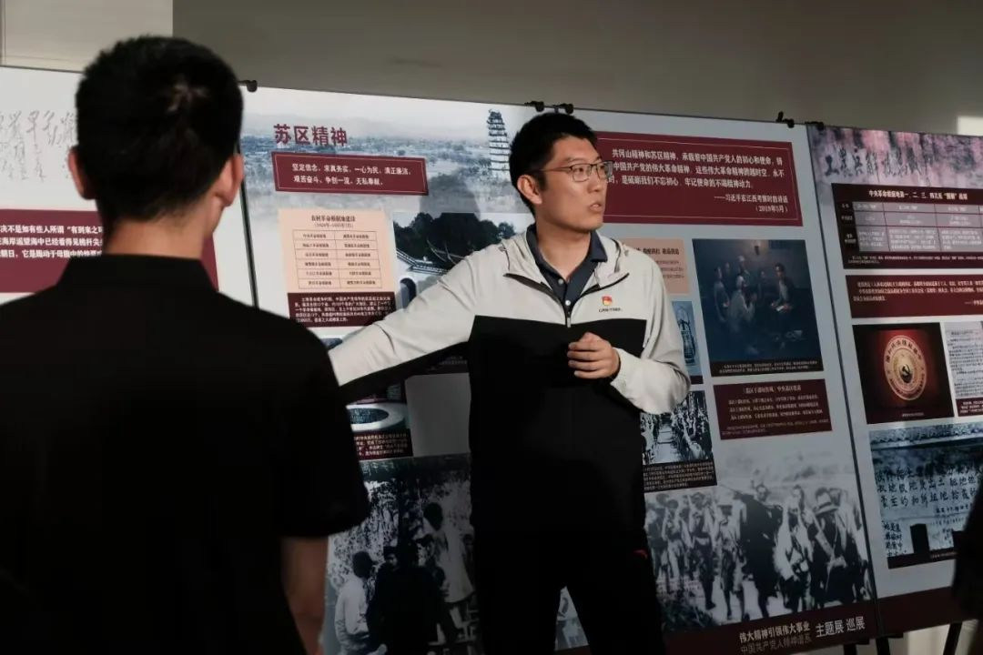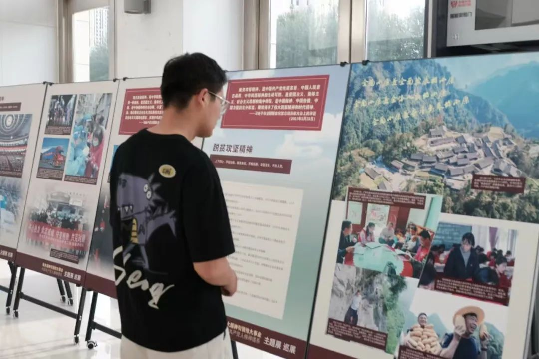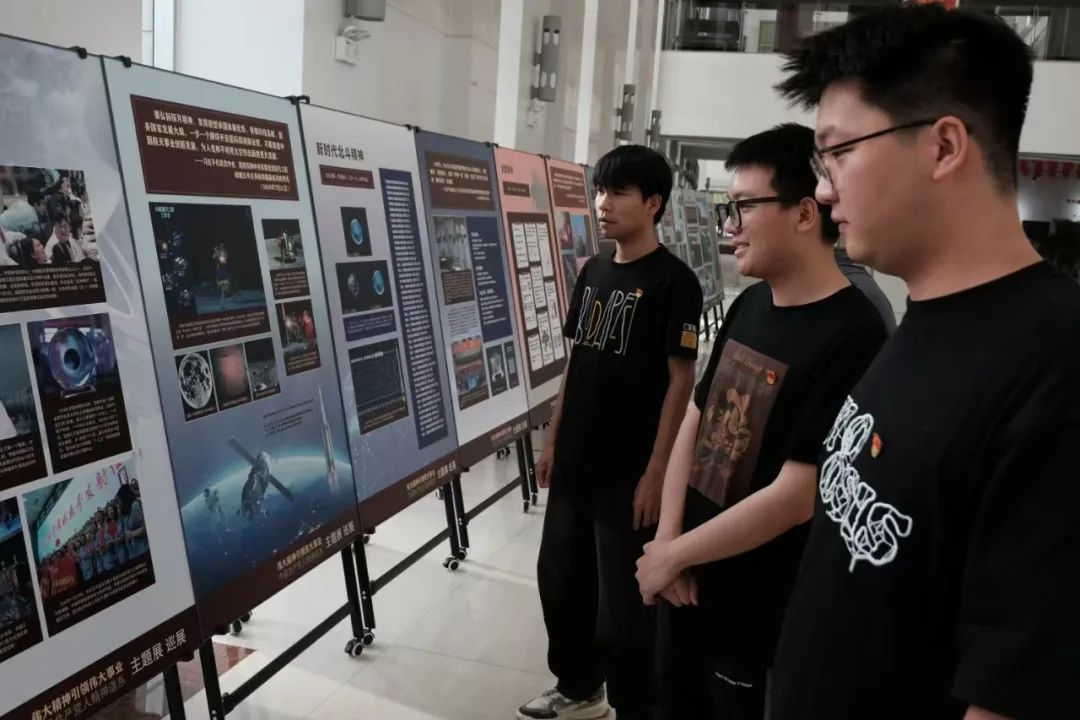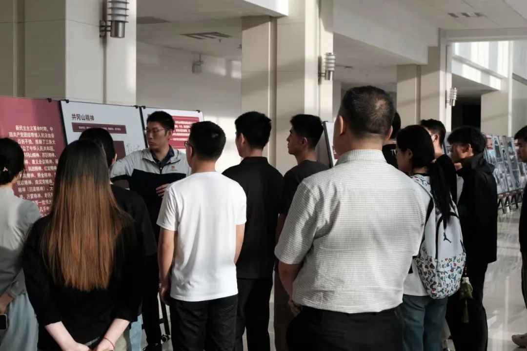 为进一步深化党史学习教育,传承红色基因,增强党员的历史使命感和责任感,中共yl7703永利集团(稀土工程技术学院)本科学生支部委员会于2025年6月4日晚6:30在逸夫楼一楼大厅开展党日活动,由院党委副书记冯佃臣书记及本科学生党支部书记韩聪一同志带领同学们参观以“伟大精神引领伟大事业——中国共产党人精神谱系”主题的巡展,并开展交流讨论,分享参观感悟与心得体会。