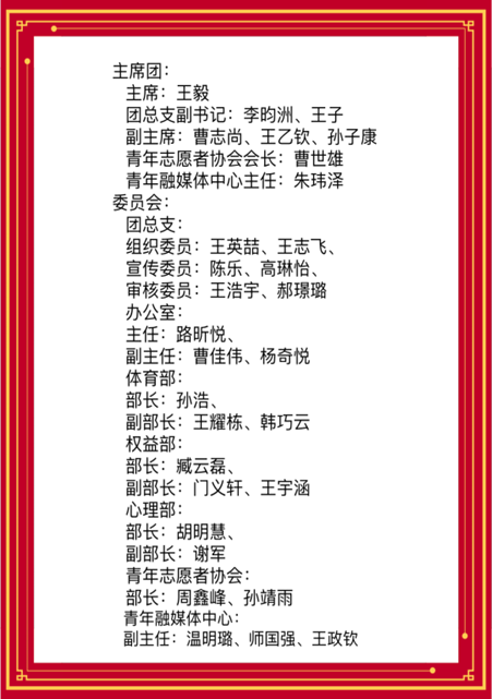 yl7703永利集团辅导员祝鹏举老师为我们宣读2024届团总支学生会主席团及委员会成员名单。