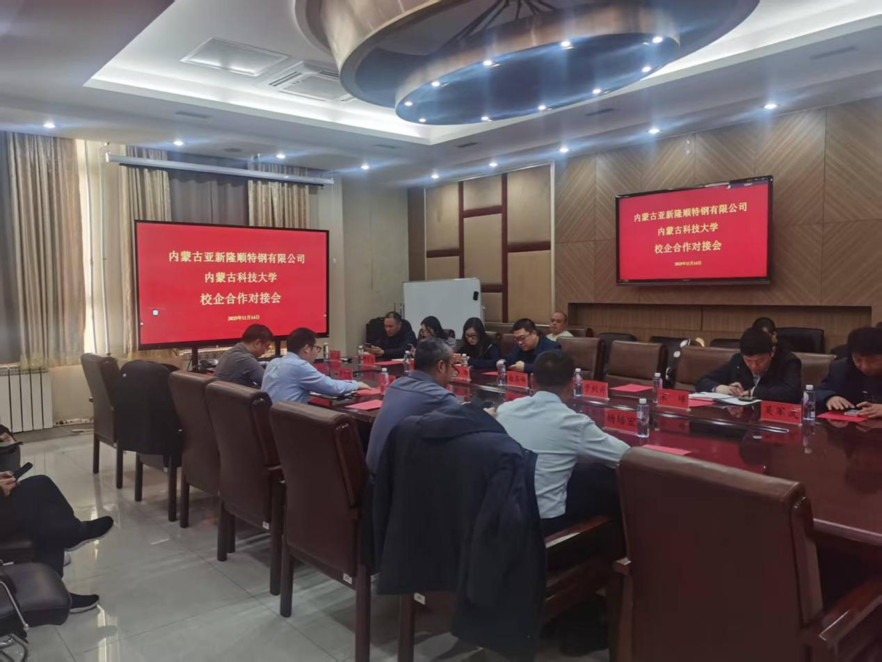 2025年11月14日,在yl7703永利集团A301会议室举行我校与内蒙古亚新隆顺特钢有限公司校企合作对接会,对深入推进产教融合、校企合作工作,进一步提升我校校企合作办学质量,聚焦校企共同育人、科研合作等,实现校企共赢。