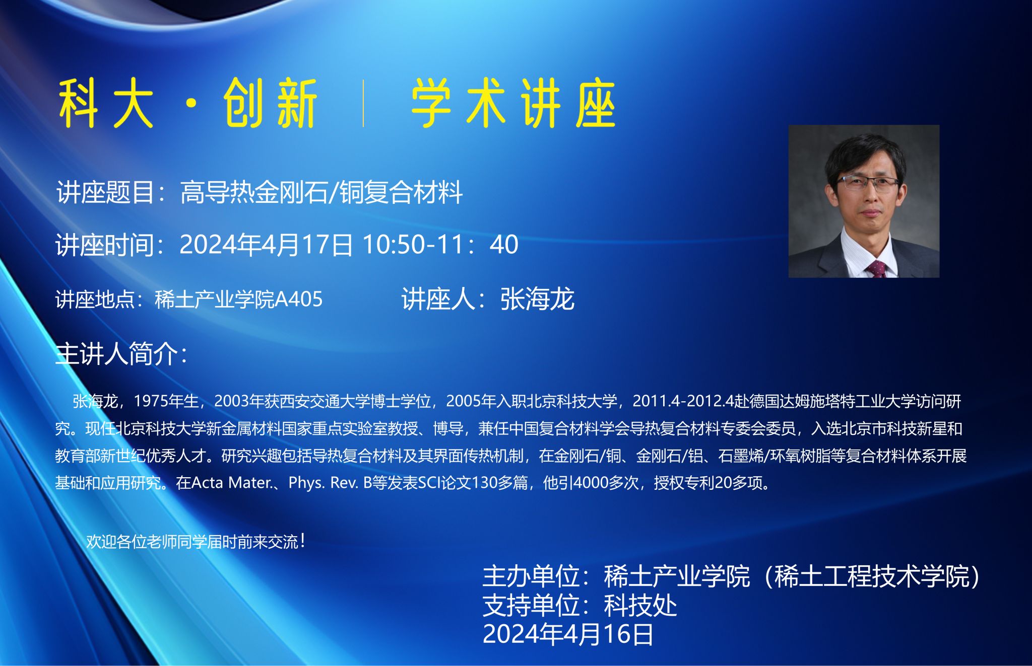 张海龙,1975年生,2003年获西安交通大学博士学位,2005年入职北京科技大学,2011.4-2012.4赴德国达姆施塔特工业大学访问研究。现任北京科技大学新金属材料国家重点实验室教授、博导,兼任中国复合材料学会导热复合材料专委会委员,入选北京市科技新星和教育部新世纪优秀人才。研究兴趣包括导热复合材料及其界面传热机制,在金刚石/铜、金刚石/铝、石墨烯/环氧树脂等复合材料体系开展基础和应用研究。在Acta Mater.、Phys. Rev. B等发表SCI论文130多篇,他引4000多次,授权专利20多项。